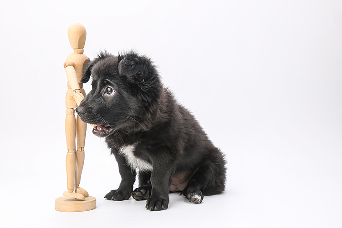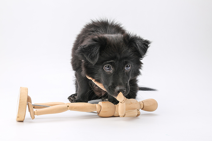 这里我拍的狗狗是我们自己家养的小黑狗,摄影也是在自己的棚里进行,由于是自己家的娃儿,所以配合度也很好,基本上让怎么造型就怎么造型,不需要过多的引导,当然了,在拍摄的时候也是跟拍人类幼崽一样,很多时候还是需要进行抓拍,毕竟活体生物总是在动的。