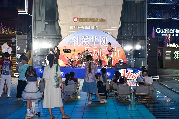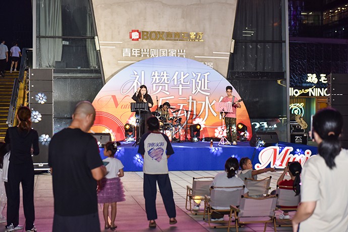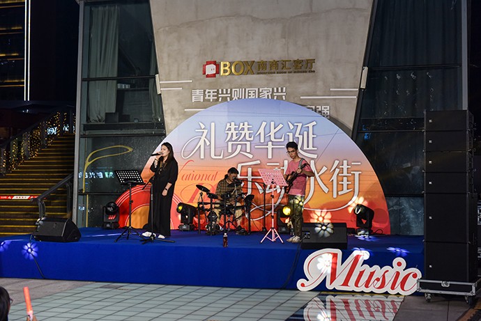 由于是国庆,便没有特别多的人,然而带来的好处也是显然的,没有嘈杂的人声反而方便乐队来进行表演,台下三两排小凳子稀稀拉拉的坐着一些人,显然还没有路过的人多,不过确实整体偏年轻,年轻人们把自己的孩子也带来捧场了;热闹是没有的,文艺是到位的,至少小众的人能够近距离的参与这样的表演就挺好,很多时候,我们要的是单纯的听歌,而不是喧闹的气氛,难得有这样不需要忙碌的假日静静地坐下来听歌,单纯的放松,不用紧绷着身体与精神,多久没有这样的感觉了?上次有这样的感觉还是小时候在小广场上大家一起看那14吋的黑白电视机?