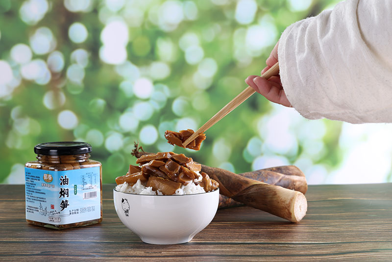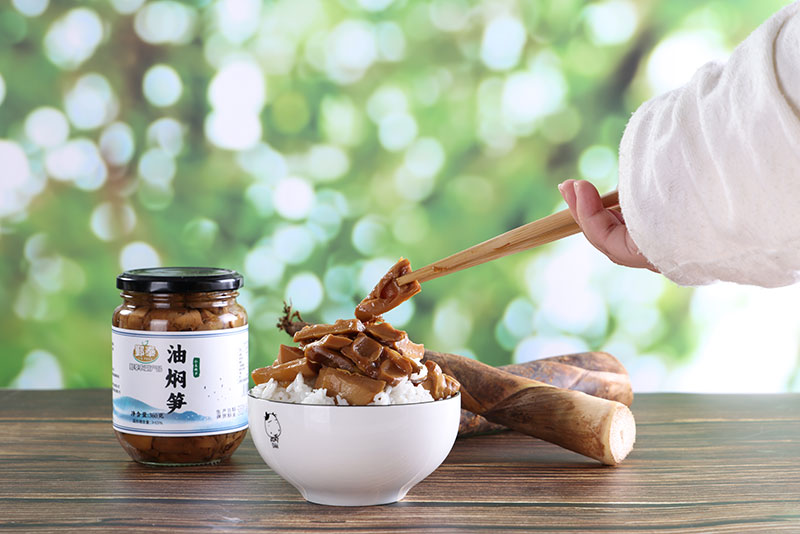 当我看到客户拿着4瓶油焖笋来,我是有点儿不知所措的,日常来说,给拍电商的照片是需要有环境,有道具的,一般来说都是提前准备好各种道具再进行拍摄的。就像前年给肉肠拍照那样,都是提前准备了不少东西的。
