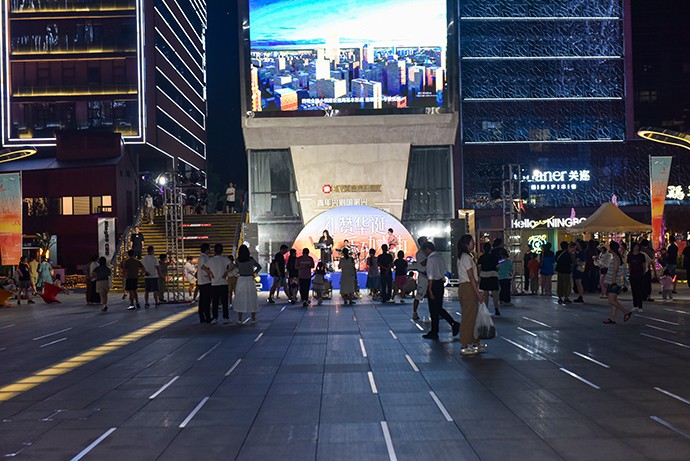 由于是国庆,便没有特别多的人,然而带来的好处也是显然的,没有嘈杂的人声反而方便乐队来进行表演,台下三两排小凳子稀稀拉拉的坐着一些人,显然还没有路过的人多,不过确实整体偏年轻,年轻人们把自己的孩子也带来捧场了;热闹是没有的,文艺是到位的,至少小众的人能够近距离的参与这样的表演就挺好,很多时候,我们要的是单纯的听歌,而不是喧闹的气氛,难得有这样不需要忙碌的假日静静地坐下来听歌,单纯的放松,不用紧绷着身体与精神,多久没有这样的感觉了?上次有这样的感觉还是小时候在小广场上大家一起看那14吋的黑白电视机?